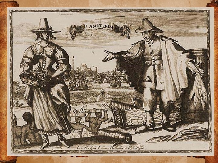 Who were the Dutch? • The Dutch came from The Netherlands, a seagoing nation in Northern Europe. • Dutch power reached its height in the 1600 s, when they established trading colonies in Asia, Africa, Brazil, the Caribbean and North America. • New Netherland would be the North American arm of an empire that traded in spices, sugar, coffee, furs and African slaves. • The Dutch were known as a hard-working, orderly people who tolerated diversity.