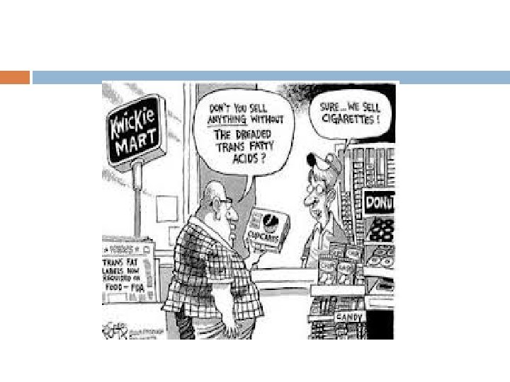 Trans Fats USDA now requires nutritional labels to include amount of trans fats some cities & Denmark ban restaurants from using trans fats