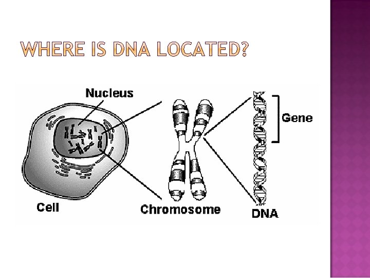 When organisms reproduce, traits are passed from parents to offspring. These traits are carried in DNA, the genetic information found in the nucleus.