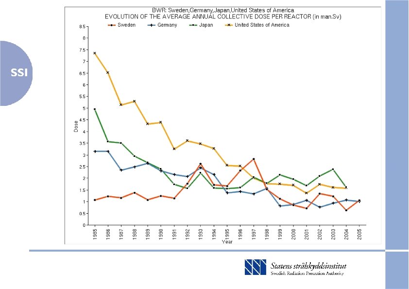New regulations from SSI in 1994 • A formalised structure of the ALARA work “ALARA-programme” • Improved radiation protection education • Lowered dose limits • Planning level on collective dose