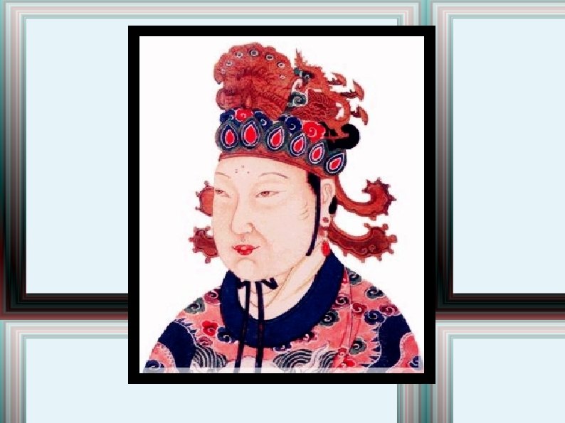 Wu Zetian Tang dynasty is interrupted by Zhou Dynasty Wu went from a consort of emperor Taizong (age 13) to Empress of China - Ruthless - May have killed her own daughter to frame a political opponent - Did kill one son and deposed two more Controlled Emperor starting in 655, ruled from 690 -705