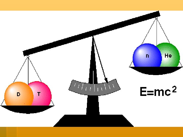 Hydrogen atoms fuse together to make a helium atom. § But a neutron is released along with a lot of energy. § This left over matter 2 becomes energy. (E=mc ).