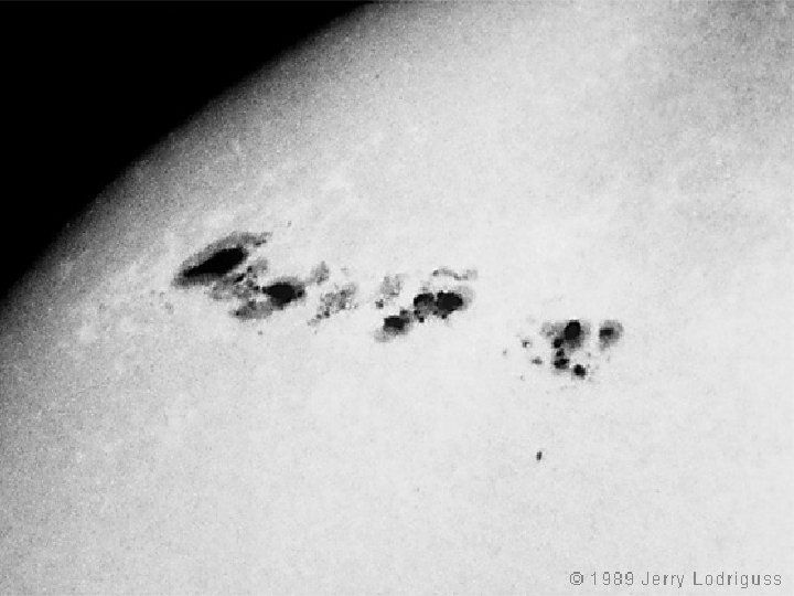 What causes sunspots? § Sunspots occur where the sun's magnetic field loops up out of the solar surface and cool it slightly, making that section less bright.