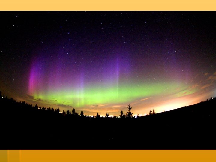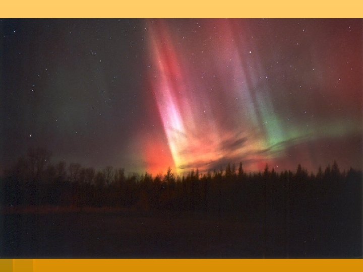 Auroras § Beautiful displays of color and light appearing in the sky § They occur when solar wind interacts with the magnetic fields of the Earth in the upper atmosphere. § Also called the Northern Lights or Southern Lights