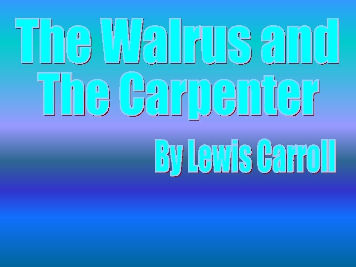 The Walrus and the Carpenter Walked on a mile or so, And then they rested on a rock Conveniently low: And all the little Oysters stood And waited in a row.