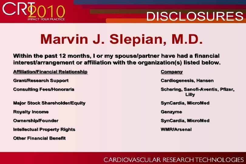 The Syn. Cardia Cardio. West. TM Total Artificial Heart Marvin J. Slepian, M. D. Sarver Heart Center University of Arizona Tucson, Arizona 2010