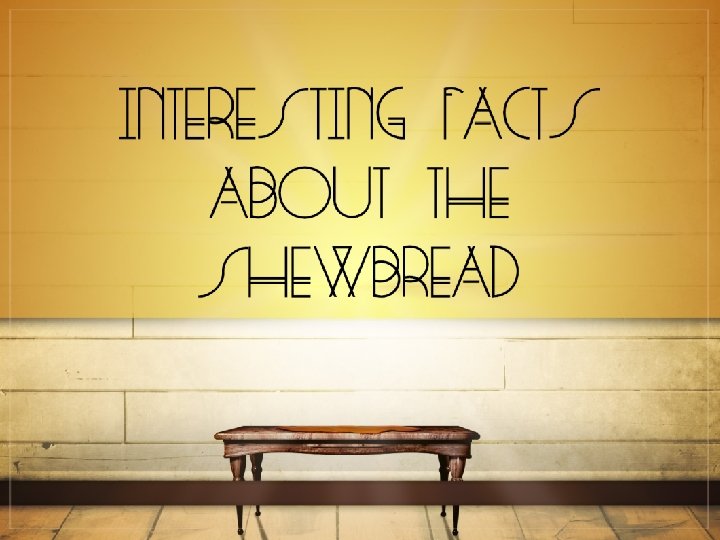 • Shittim wood speaks of the sinless, incorruptible and perfect humanity of Christ. • The wood is the most incorruptible wood we know. • With the addition of its border, the Table of Shewbread would be approximately 2 -1/2 cubits long, 1 -1/2 cubics wide, and 1 -1/2 cubits high.
