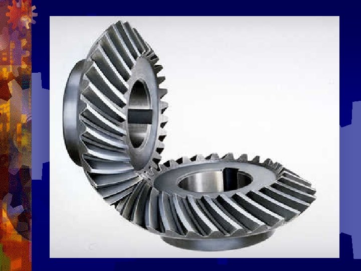 Helical Gears • A helical gear is a gear whose teeth are in the same direction as a line winding around a cylinder. • This type of gear is quieter than a spur gear. The teeth on a helical gear being sloped, therefore longer, the engagement is continuous. • As the teeth mesh, the next tooth is not totally disengaged. The force is transmitted more progressively.