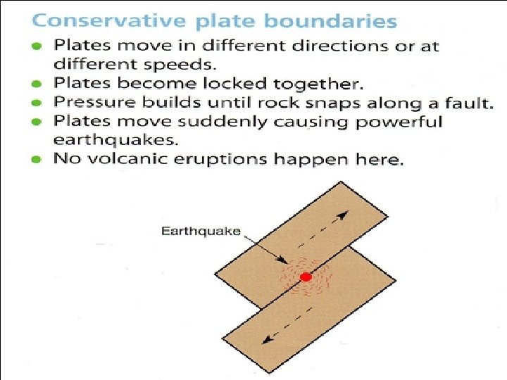 Types of Plate boundary • Conservative alongside each other. No new Two plates move ____ plate is created or destroyed, and no landforms appear.