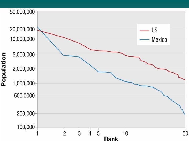 Rank Size Rule u. A country’s nth largest city is 1/n the population u 2 nd largest is 50% the population of the 1 st u 3 rd is 33. 3% of the 1 st u 4 th is 25% and so on… u Examples: To be filled in after completing assignment.