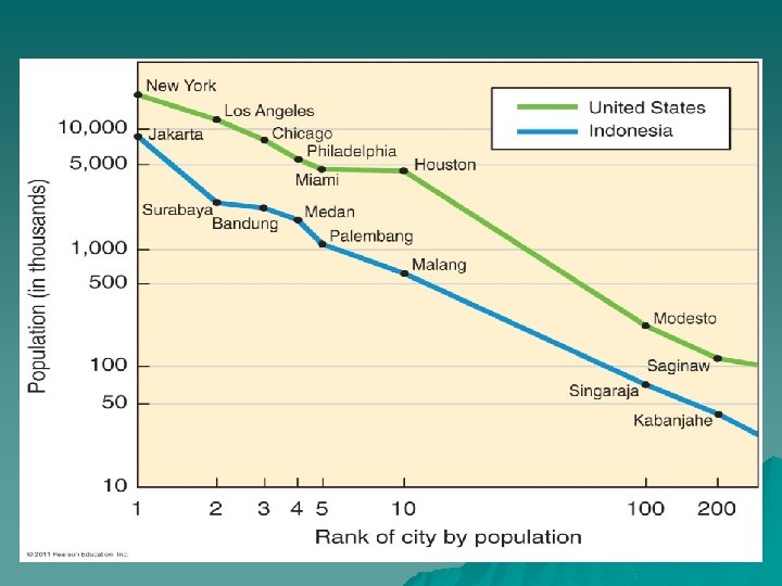 Primate City Rule u The largest city has over twice as many people as the second ranking city. u One city dominates the country. u Examples: