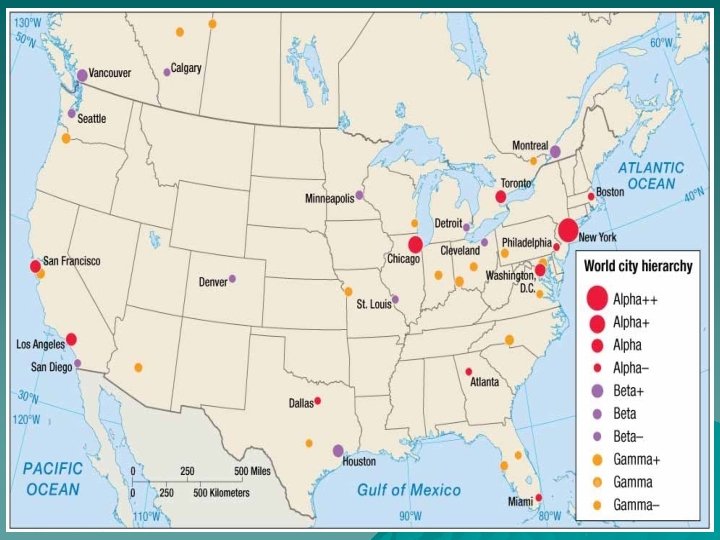 Global Cities Highly specialized u Offer most concerts, restaurants, museums, theaters etc. u Three tier ranking… u Alphau Betau Gammau All cities are connected and dependent on each other! u