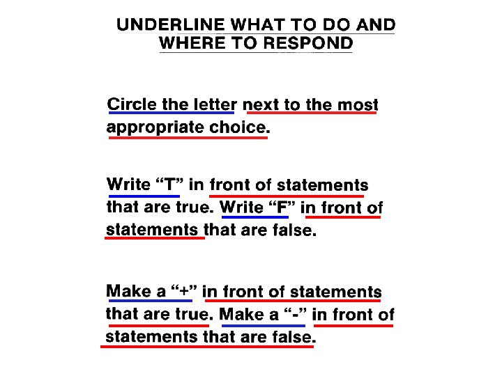 I = Inspect the Instructions • R ead instructions carefully. • U nderline what to do and where to respond. • N otice special requirements.