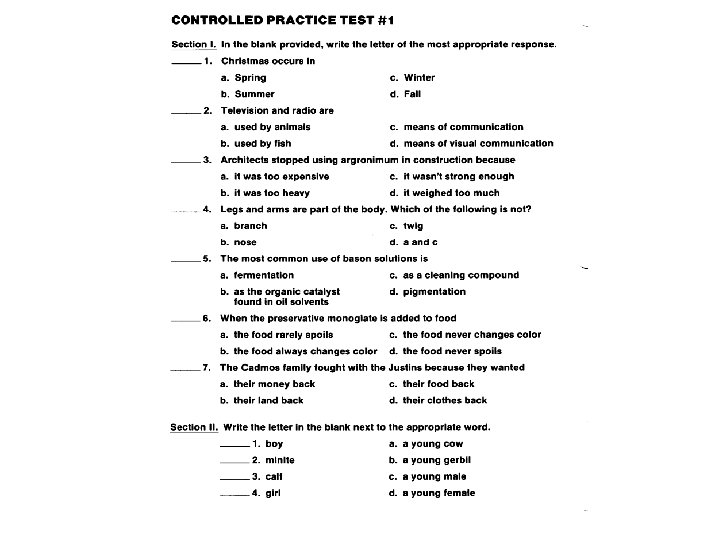 S = Survey • Look over the test to see if you answered all the questions. • Make sure you answered questions in the right way. • Change an answer only if you are sure!
