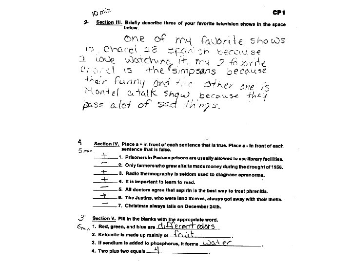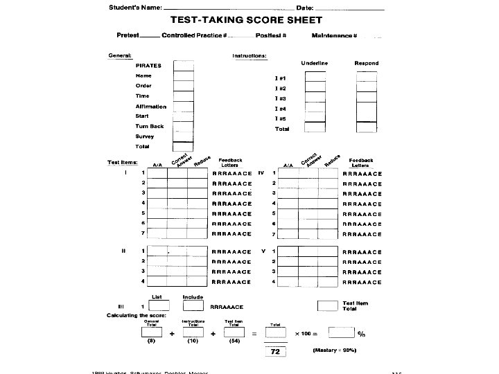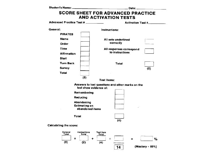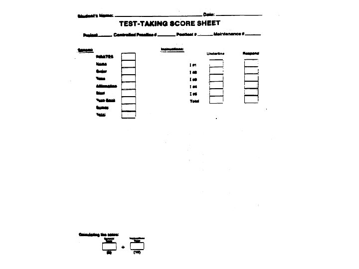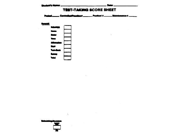 Scoring (Page 89) • Scores are received for: – General test taking skills (Possible 8 pts. ) – Following instructions (Possible 10 pts. ) – Test items (Possible 54 pts. )