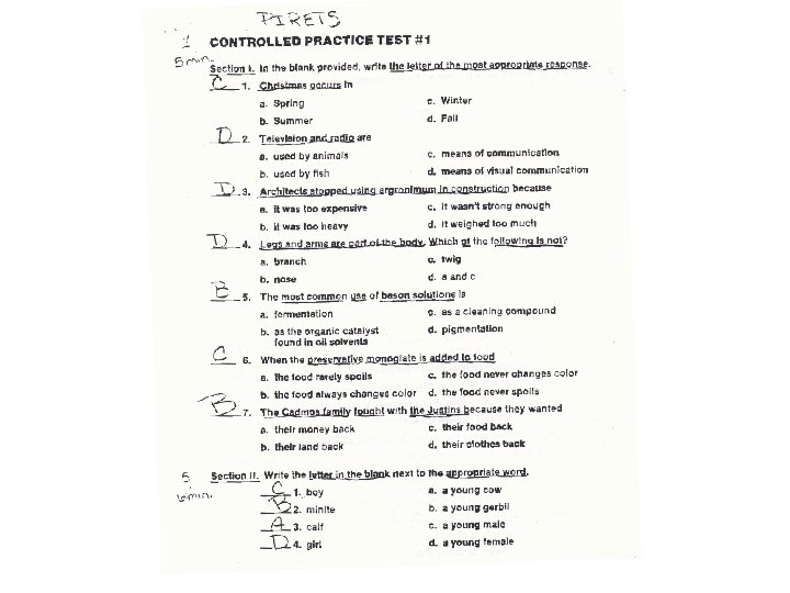 R= READ, REMEMBER, REDUCE • Read the whole question. • Try to remember what you studied. • If there are choices, reduce the # of choices by marking out the ones that are definitely incorrect.