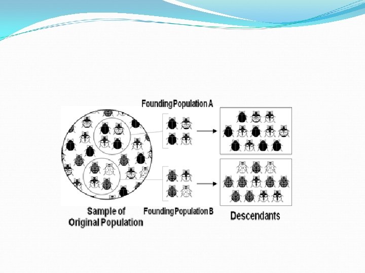 Genetic Drift Natural selection has its effect on the frequency of alleles in a population. Some of these changes in allele frequency, however, can happen randomly. This kind of random change in allele frequency is called, genetic drift. Example: A small group of beetles may colonize a new habitat. This group of beetles may carry alleles in a different relative frequency than the one they came from. Therefore, the new population will be genetically different from the original. This is known as the founder effect.