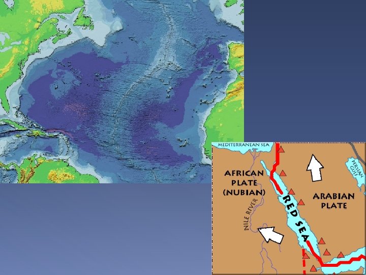 Causes of Plate Motion � Ridge Push › New rock at mid-ocean ridges is hot, less dense, rises higher › As it cools, it sinks away from the ridge