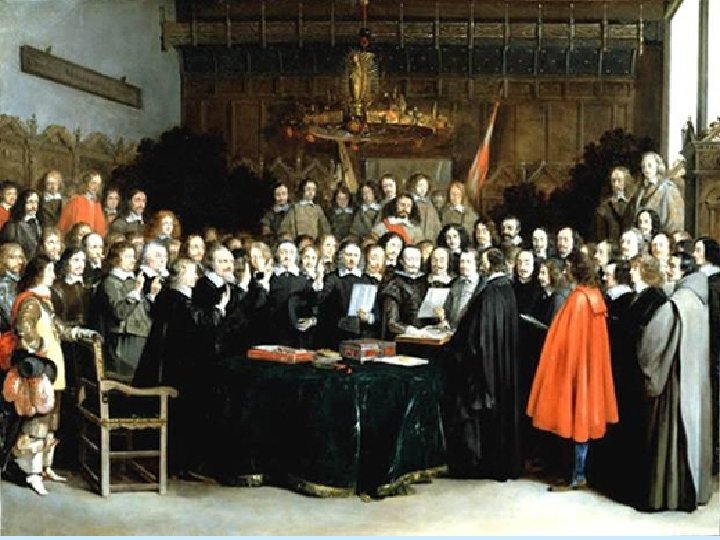 Peace talks begin in Westphalia • This becomes a huge peace conference • The church (pope) is not involved, nor does the pope sign the treaties • Calvinism is added to the mix: now there is Lutheranism, Catholicism, and Calvinism