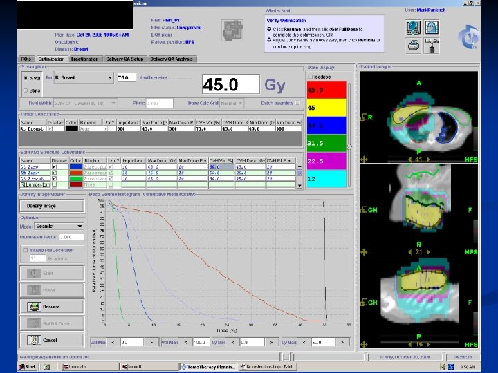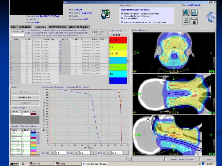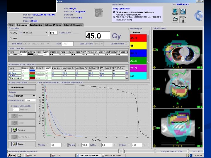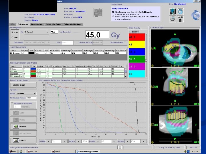 Planning System Single workstation for planning n Cluster of 16 computers, w/ dual processors for computing. n Optimizations done on “beamlets” that can be calculated overnight n Very few contouring tools, need another system for contouring and fusions n No planning review station, system not multitasking n