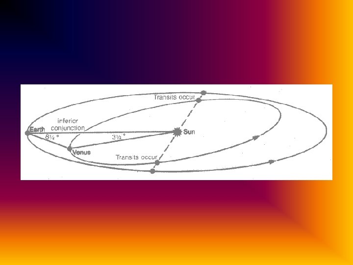 Venus appears 3. 125 % of the Sun’s apparent diameter. The orbit of Venus is inclined 3. 4 degrees with respect to Earth’s orbit. Between the Years 2000 BC to 4000 AD, a period of 6000 years, Venus will make a total of 81 transits. In comparison, Mercury makes 13 to 14 transits per century.