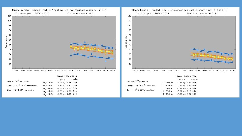 20 years of free tropospheric ozone observations above western North America during April-May (O. Cooper, U. of Colorado/NOAA, Boulder) 95% 67% 50% 33% 5% 19 -yr change in O 3: +5. 9 +/- 4. 0 (10 %) Lin et al. (2015), Revisiting the evidence of increasing springtime ozone mixing ratios in the free troposphere over western North America, Geophys. Res. Lett. , 42, doi: 10. 1002/2015 GL 065311 23