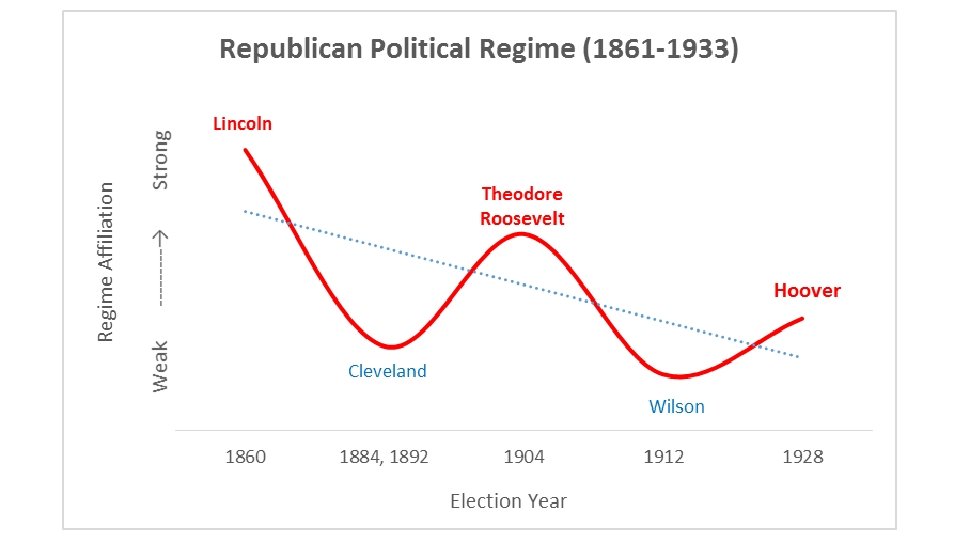 Conclusion: The Politics of Pragmatism • Is the U. S. doomed to keep repeating the same historical pattern? • One way to break the pattern is for Americans to understand that truly transformative reconstruction is probably no longer possible given political thickening: the bureaucracy is massive, interests are entrenched, etc. • The alternative is to simply solve problems as they come along. • The problem is that, as we saw in the 2016 election, pragmatism is not much of a mobilizing standard to win elections and garner support for public policy. • Should the American people be educated on these matters? Could they be? How would that happen? Would it make a difference if Americans understood that presidential elections are not merely chronological but follow a recurring pattern? Could the pattern be stopped?
