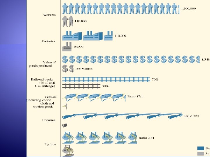 Confederacy (South) Resources, Strength, & Strategy Resources/Strengths: � Geography: “home-field” advantage � Better generals (West Point graduates) � Cotton � Better riders & marksman � Famous Generals: � Robert E. Lee � Stonewall Jackson � P. G. T. Beauregard � � Strategy to Win: � Attack Union repeatedly � Inflict heavy casualties � Wear down the Union until it lost the will to fight � Gain diplomatic recognition & financial assistance from Europe (France & Great Britain).