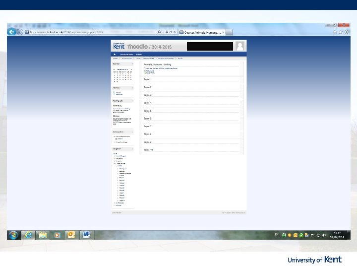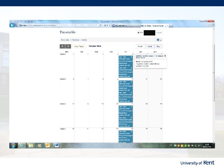 Essential source of information • www. kent. ac. uk/student/ • Student Data System: • • Your timetable Your marks • Moodle • Kent’s Virtual Learning Environment • See your essay questions and submit work on Moodle • Important information • Deadlines • University news