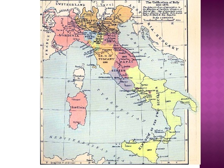 BARRIERS TO ITALIAN NATIONALISM � Geography: The River Po divided north and south and the Apennines Mountains divide east and west. � Illiteracy – as most of the population could not read and write, nationalistic propaganda was difficult to spread. � The Pope - felt a united Italy would reduce his rights in the Papal States. � European powers such as France and Britain did not want a unified and strong Italy controlling the Mediterranean.