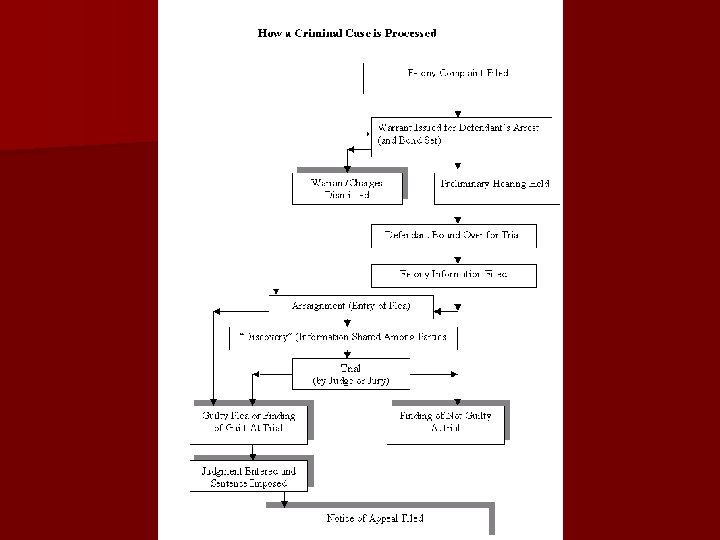 Criminal Law n Intended to prevent people from harming each other or each other’s property 3 major types: n Crimes against persons § Usually violent § The victim either injured or killed § Examples: murder, rape, kidnapping n Crimes against property § More common § Examples: burglary, arson, vandalism n Victimless crimes § Examples: illegal drug use and gambling