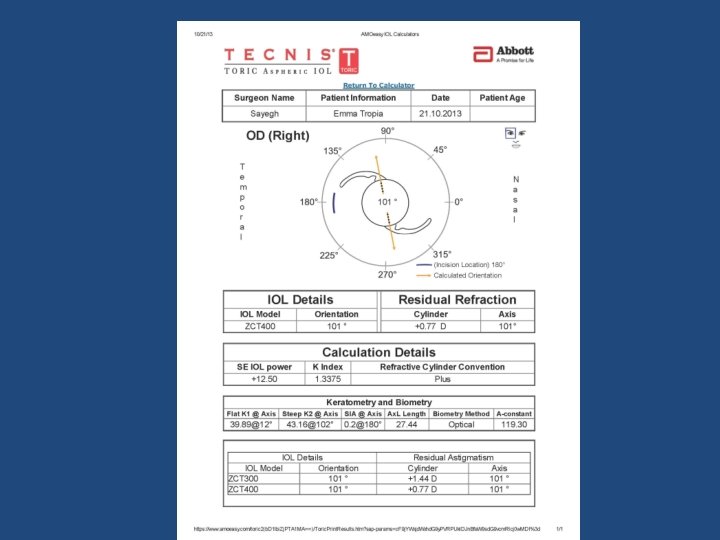 UICT (“wicked”? ) • Advantages – Does exact calculation – Choice of 2 stage calculation or 1 stage – Provide all FDA or CE approved choices – Provides additional tools, such as LRI, toric contact lens option for patient who wants to wait for cataract but correct for astigmatism – Visual interface to suggest "what if" – Evolving towards “universal expert system for cataract and refractive surgery”