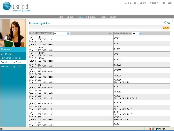 U. Select – (formerly the Course Applicability System) www. transfer. org