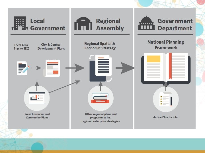 RSES Approach ØConsolidation of regional structures, greater coherence between national policy making and local action ØStronger role in economic development through RSESs (LECP role) ØPrepare RSES in tandem with NPF Ø 12 year lifespan 2017 to 2029 ØRSES will be aligned with the Regional APJs ØPolicy formulation based on evidence ØEach RSES will take account of sub-regional Strategic Planning Areas ØBuilding block / co-production approach