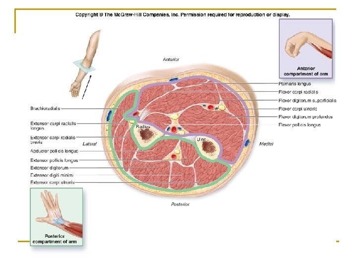 n Third layer q q n Flexor digitorum profundus Flexor pollicis longus Fourth layer q Pronator quadratus Action: flex radiocarpal joint and fingers, pronate forearm