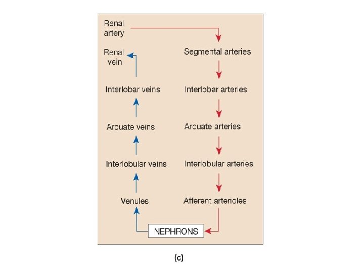 • • • Renal artery Segmental artery Interlobar artery Arcuate artery Afferent arteriole Veins carry same names