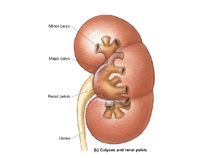 Inner Kidney • 6 -18 renal pyramids – Renal papillae project into renal sinus • Renal columns • Renal Sinuses filled with Adipose • Major calyx • Minor calyx • Lead to spaces and renal sinus – Continuous with ureter