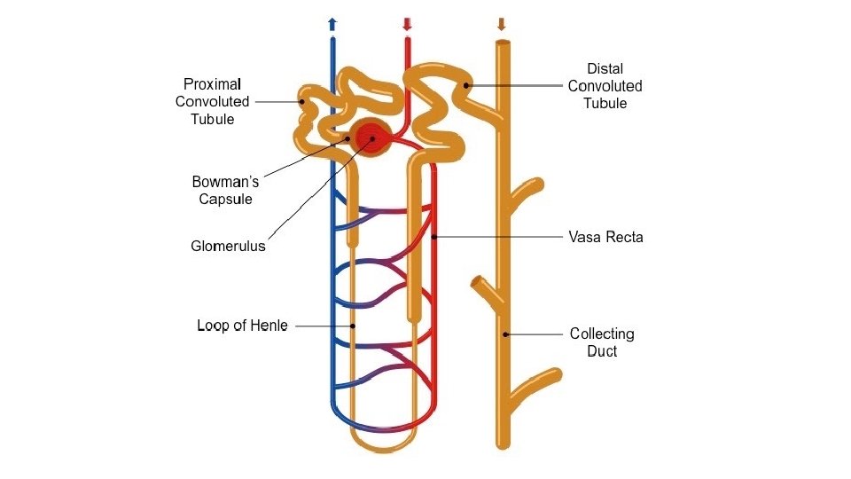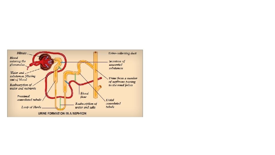 Regretfully, there is still an excess amount of urea and H+ in the blood after their filtration at the glomerulus. So the urea and H+ that did not get filtered and are still in the blood, get secreted out of the peritubular capillaries/blood into the collecting duct of the nephron to join the substances in the urine that had been filtered into urine back at the glomerulus. This is how the nephron gets unwanted substances out of the blood if they did not get filtered out.
