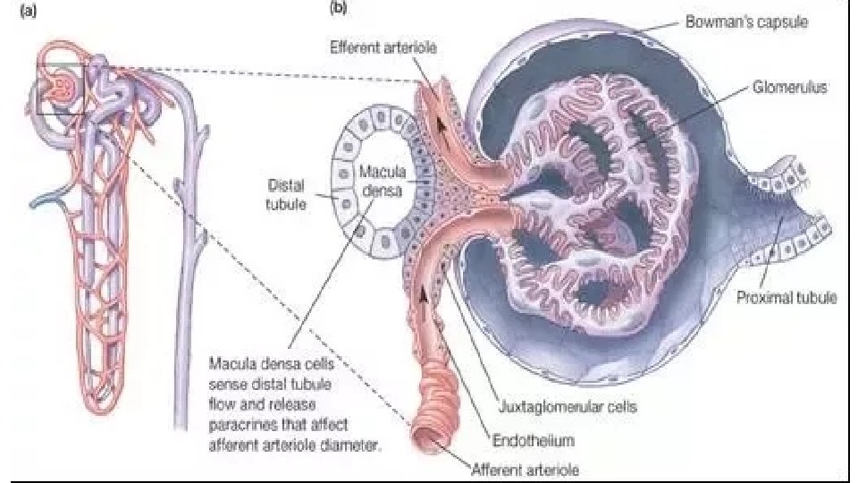 A sensor called the juxtaglomerular apparatus (JGA) monitors the blood pressure of the blood entering the glomerulus. The JGA is composed of some modified cells of the afferent arteriole and the macula densa of the ascending loop of Henle.