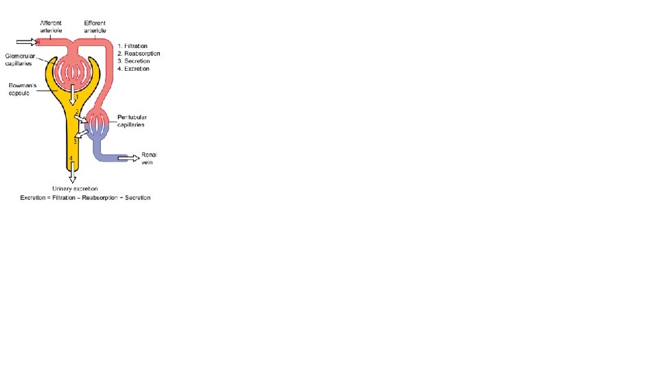 Pathway 4 – Secretion Blood enters the renal artery and flows through the arcuate artery to the afferent arteriole and then the glomerulus. Substances following this pathway DO NOT get filtered into the nephron. They pass out the glomerulus via the efferent arteriole peritubular capillaries arcuate vein renal vein