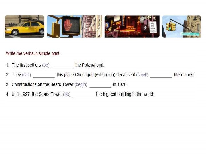 Chicago The third largest city in the United States (after New York and Los Angeles) lies on the shores of Lake Michigan. The Potawatomi once lived in this area and the city’s name derives from the Potawatomi word Checagou (meaning “wild onions”). The name was used because the place used to smell like onions. The Sears Tower (on the left) was built between 1970 and 1973 and is the highest building in the United States. It is 442 meters from bottom to the top floor, and reaches a total height of 527 meters (including its television antennas).