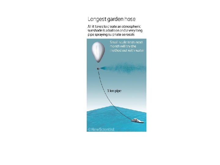 Geoengineering trials get under way Updated 17: 10 14 September 2011 by Michael Marshall Magazine issue 2829. Volcanic ash inspires sunshade (Image: Arctic Images/Corbis) • – Update 14 September 2011: The field test will be conducted at an abandoned airfield in Sculthorpe, UK. Matthew Watson of the University of Bristol, UK, presented details of the project at the British Science Festival in Bradford, UK. Field trials for experiments to engineer the climate have begun. Next month a team of UK researchers will hoist one end of a 1 -kilometrelong hose aloft using a balloon, then attempt to pump water up it and spray it into the atmosphere.