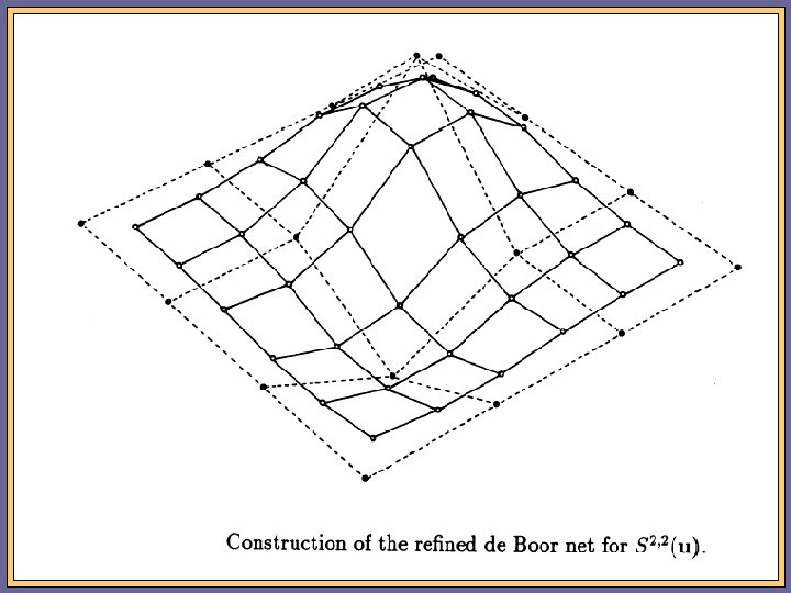 Tensor Product B-spline Surfaces Sr ; s (u) = X dri ; s N r ; s (u ¡ i) i 2 Z 2 A tensor product Bspline is the product of two independently univariate B-splines, i. e N r ; s (u ¡ i) = N r (u ¡ i )N s (v ¡ j )