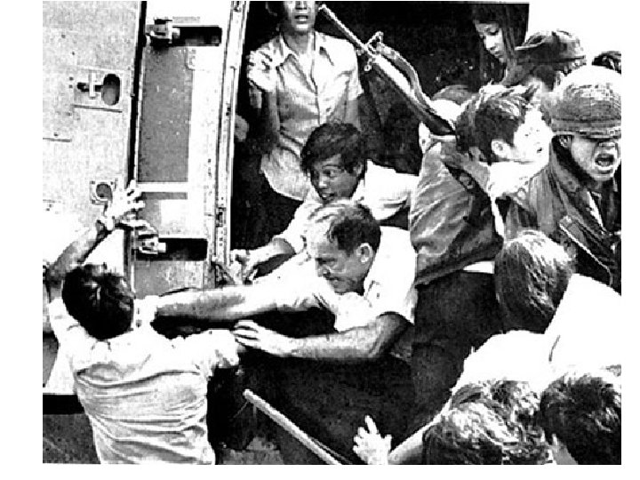 End of the War • Nixon’s Vietnamization led to the removal of U. S. troops. • By 1973, the war was being entirely fought by South Vietnamese troops. • By 1975 the North Vietnamese / Viet Cong had control of nearly every area of South Vietnam and were closing in on Saigon, the capital of South Vietnam • On April 30 th, 1975 the last U. S. helicopters evacuated the embassy • Vietnam Syndrome