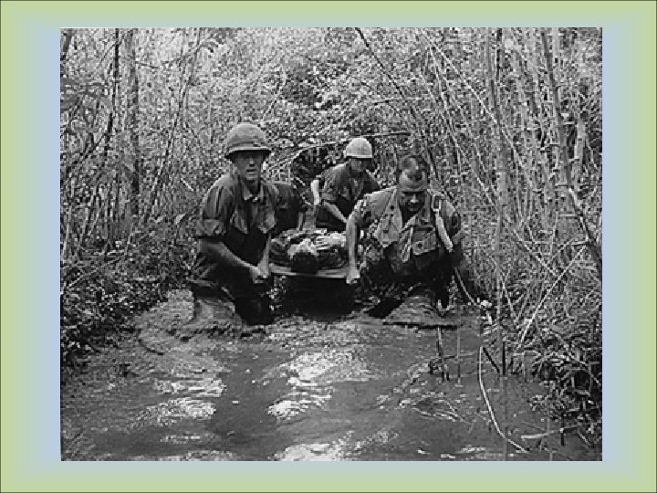 Fighting Conditions • Dense jungles, muddy trails, and swampy rice paddies • Long rainy seasons • The enemy (Vietcong) was difficult to identify- they blended in with the villagers! • Often necessary to recapture places where they had already fought