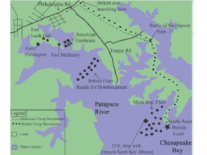 The Star-Spangled Banner • The British attacked Fort Mc. Henry at Baltimore. • Francis Scott Key watched the battle from a British ship, where he was trying to convince the British to release an American prisoner.