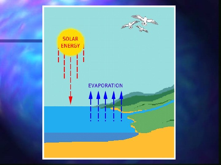 Evaporation n Conversion of water from a liquid into a gas n Water transferred from surface to atmosphere through evaporation