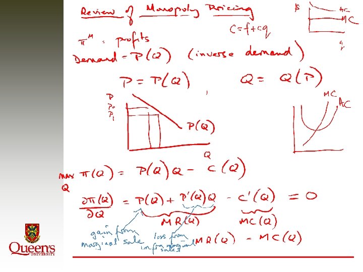 Monopoly Pricing (review) P(Q) MR(Q) MC