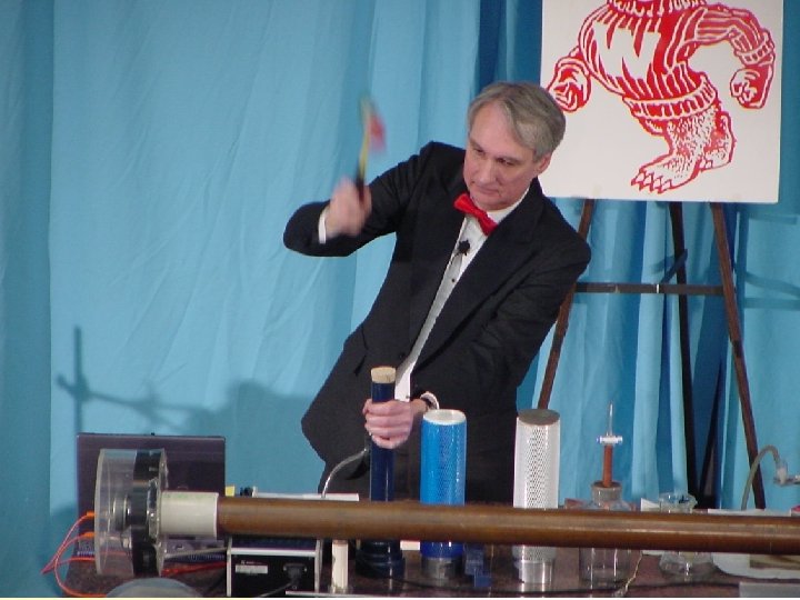 Recent Activities q 13 monthly WMTV (NBC) Sunday morning live science demonstrations q WID Super Science Saturdays q 6 th annual Department Physics Fair q Expanded Web presence (including an automatic booking system) q Satellite programs in Appleton, De Pere, Milwaukee, River Falls, and Superior, WI q Creation of a Physics Volunteer Corps q Physics of Plasma show development q Assessment of results