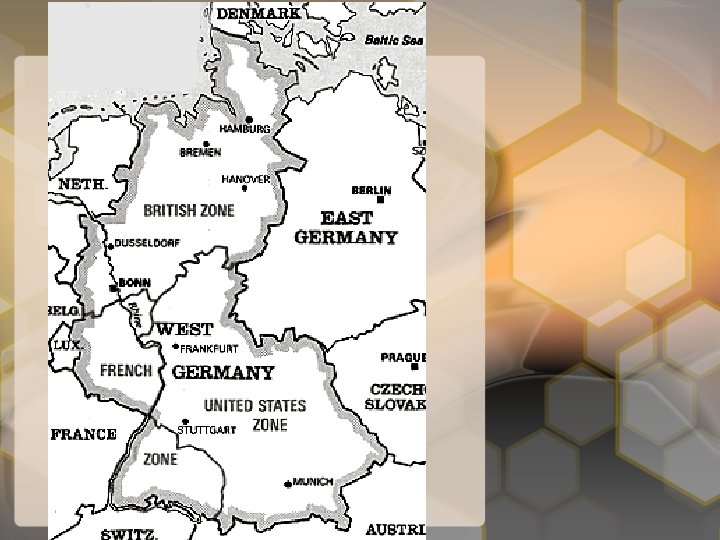 Germany! • Germany has been divided into 4 sections! • British, French, American and Soviet • They could “clean-up” • No one country could take over